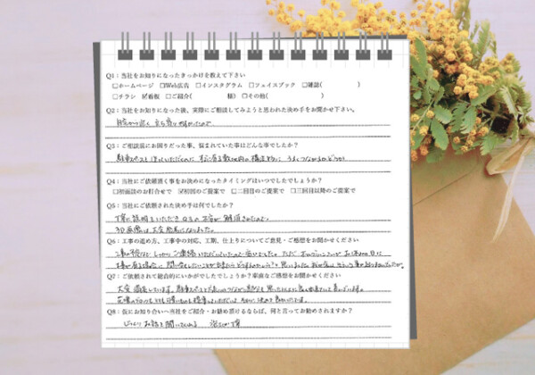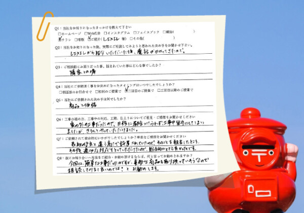 Q1:当社をお知りになったきっかけを教えてください ☑ チラシ ☑ ご紹介( LIXIL 様 ) Q...