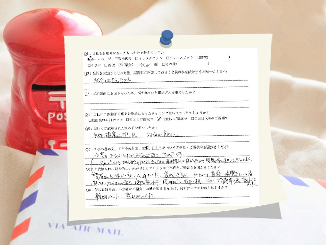 Q6:工事の進め方、工事中の対応、工期、仕上がりについてご意見・ご感想をお聞かせください