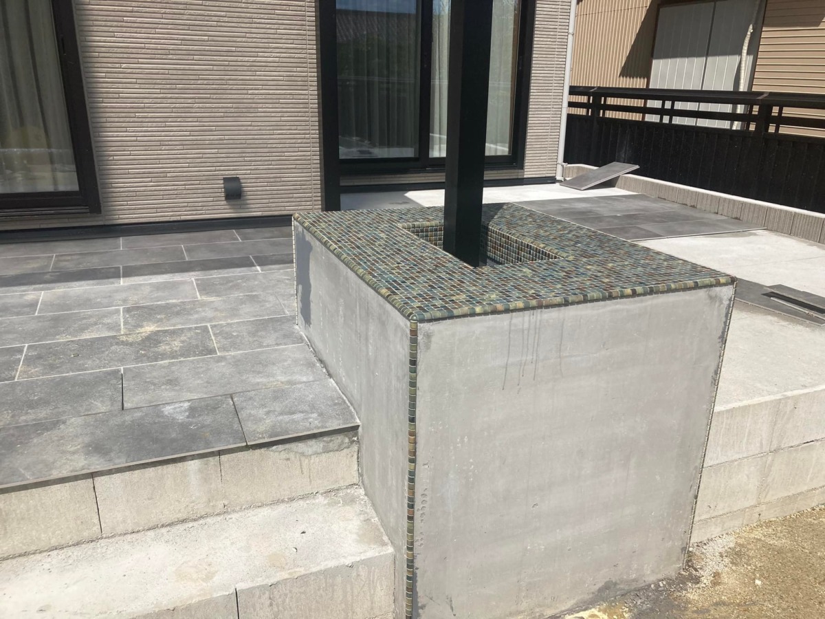 この柱が入っている部分にもタイルが貼られました❗❗しかもタイルテラス部分とはまた違った雰囲気のタイル❗❗