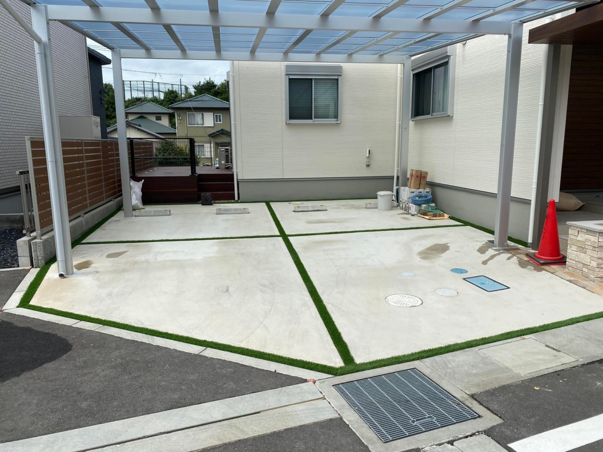 愛知県東浦町I邸 駐車場の目地に人工芝が!?!?