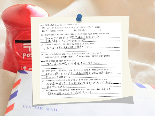 乱形石の撥水コーティング等、現場の判断で必要な作業を追加でやってもらえて有難かった。