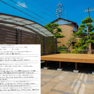 他社にできないと断られたテラスの工事が私たちの希望に沿った形で設置でき満足です!天気が曖昧で当日工事を行えるのかどうか、もう少し早く連絡をもらえたらなおよかったです。名古屋市緑区/W邸