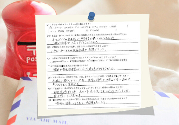 営業担当さんの対応が良く、工事も4名できていただきスピーディーかつ丁寧...