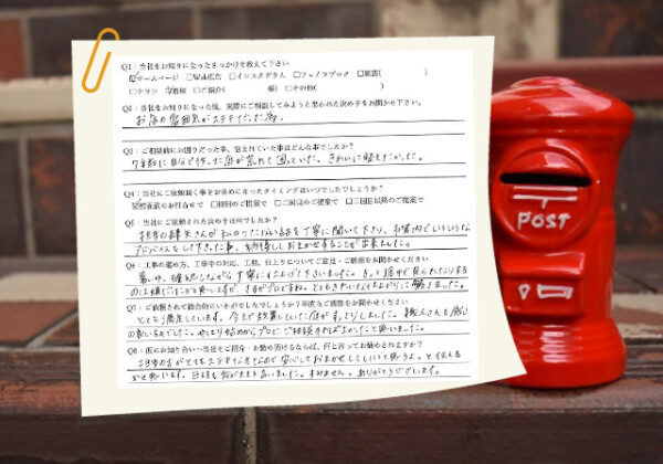 Q1:当社をお知りになったきっかけを教えてください ☑ チラシ Q2:当社をお知りになった後、実際にご相談しようと...