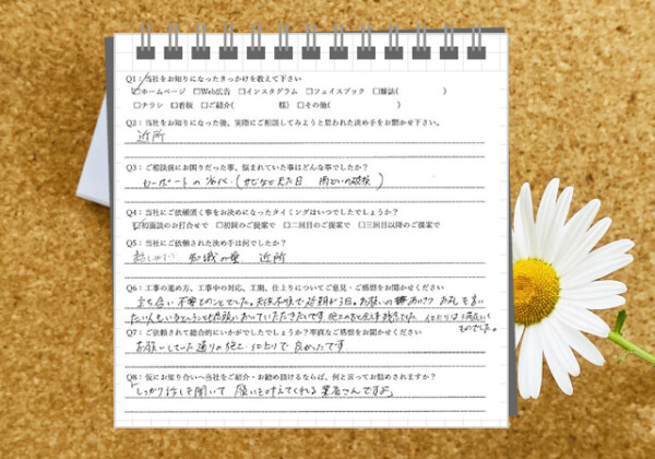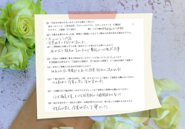 Q1:当社をお知りになったきっかけを教えてください ☑ ホームページ ☑ 看板 Q2:当社をお知りに...