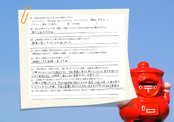 色々と提案して頂いたり、親切にしてもらったり・・・担当営業さんも職人さん...