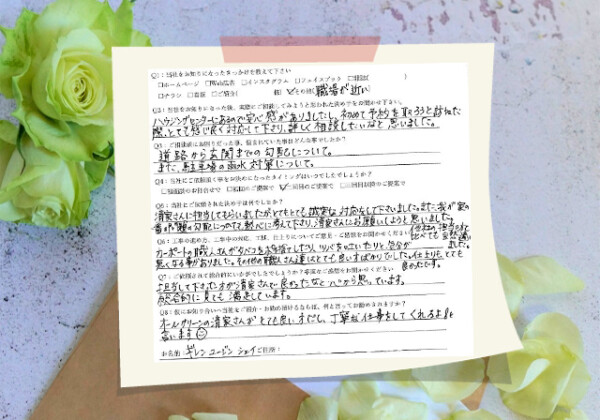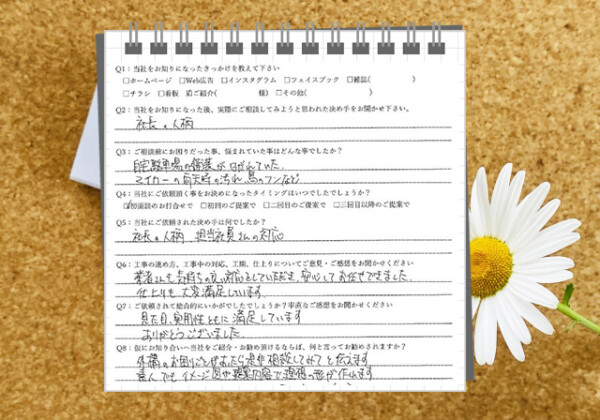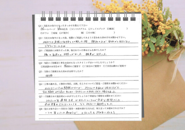 Q1:当社をお知りになったきっかけを教えてください ☑ ホームページ Q2:当社をお知りになった後、実際にご相談し...