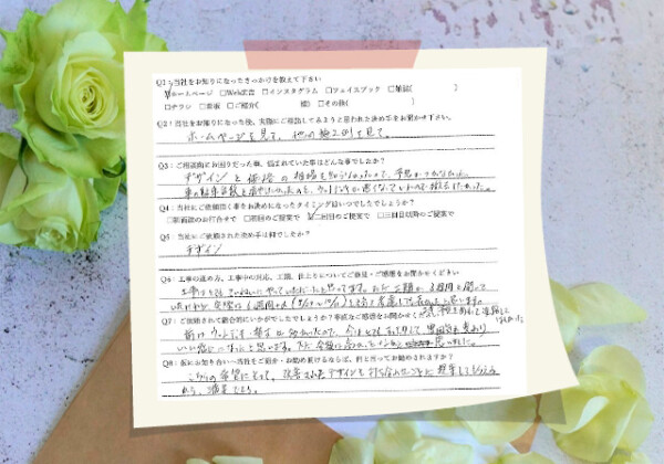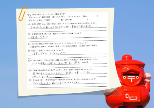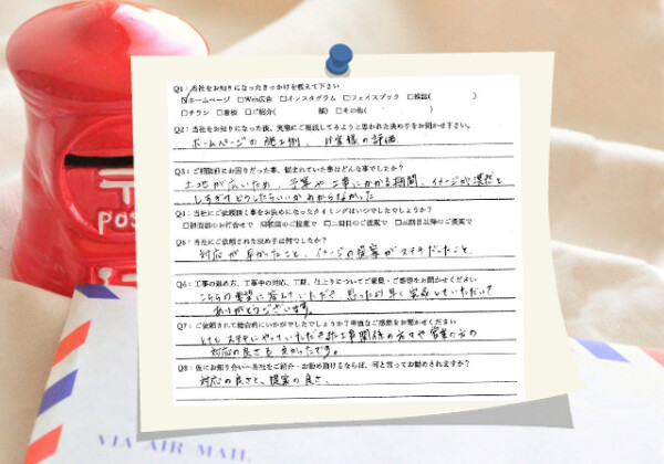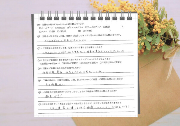 Q1:当社をお知りになったきっかけを教えてください ☑ その他( 隣地の補修工事を見て ) Q2:当社をお知りにな...