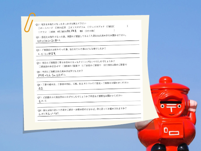 Q6:工事の進め方、工事中の対応、工期、仕上がりについてご意見・ご感想をお聞かせください