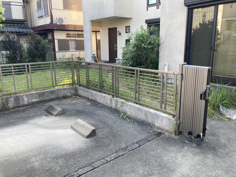 既設の駐車スペースとスライド門扉が残っていますね😲