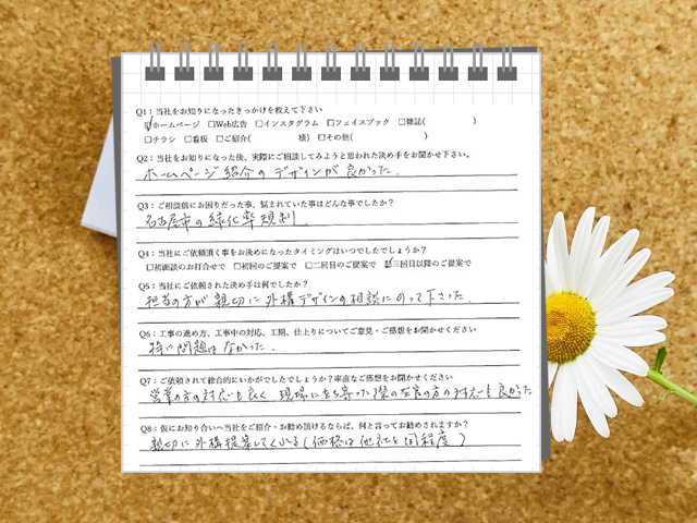 営業の方の対応も良く、現場に立ち寄った際の営業の方の対応も良かった