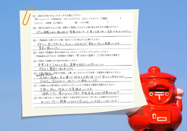 Q1:当社をお知りになったきっかけを教えてください ☑ 雑誌 ☑ 看板 Q2:当社をお知りになった後...