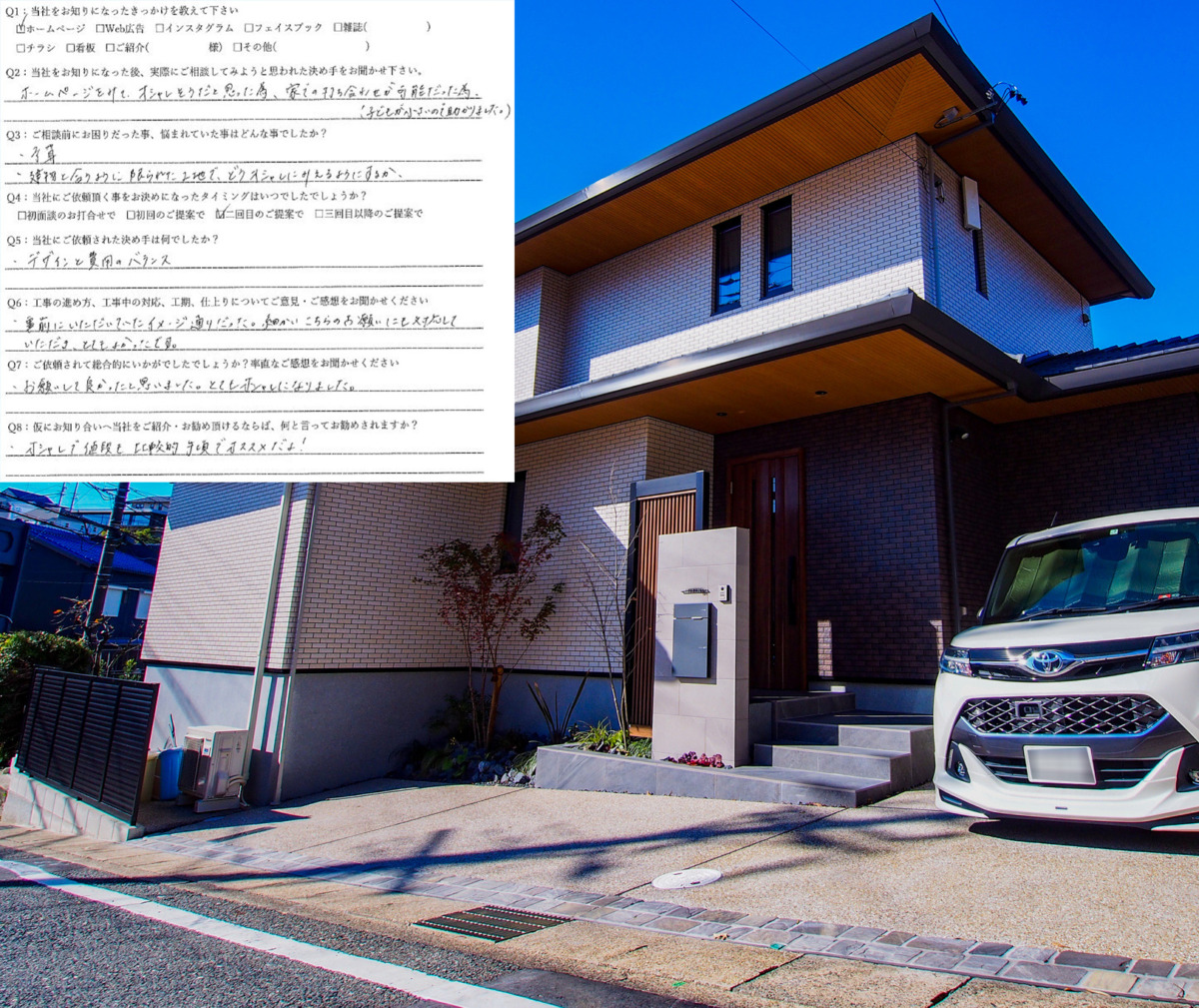自宅での打ち合わせが可能な外構屋さん!子供が小さいので助かりました。仕上がりは事前に頂いていたイメージ通りでとてもオシャレな外構になりました。こちらの細かいお願いにも対応していただき良かったです!愛知県清須市/N邸