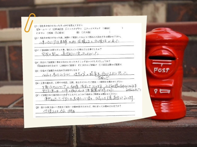 Q6:工事の進め方、工事中の対応、工期、仕上がりについてご意見・ご感想をお聞かせください