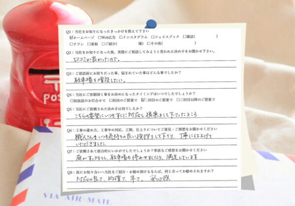 Q1:当社をお知りになったきっかけを教えてください ☑ ホームページ Q2:当社をお知りになった後、実際にご相談し...