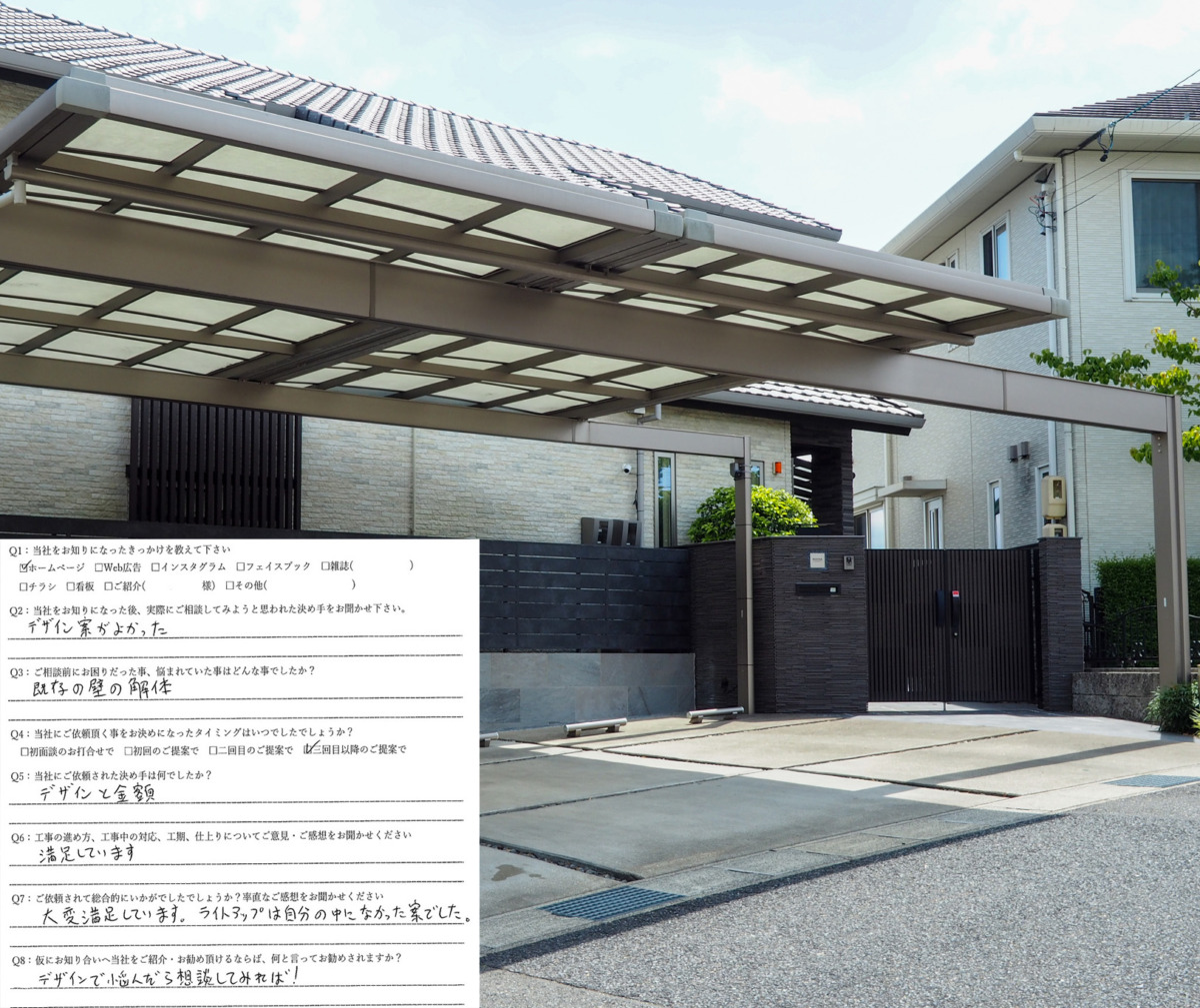 デザイン案が良かったので、相談しようと決めました。依頼をして、大変満足しています。ライトアップは自分の中になかったアイディアでした。周りには「デザインで悩んだら相談してみれば!」とおすすめします。名古屋市緑区/B様邸