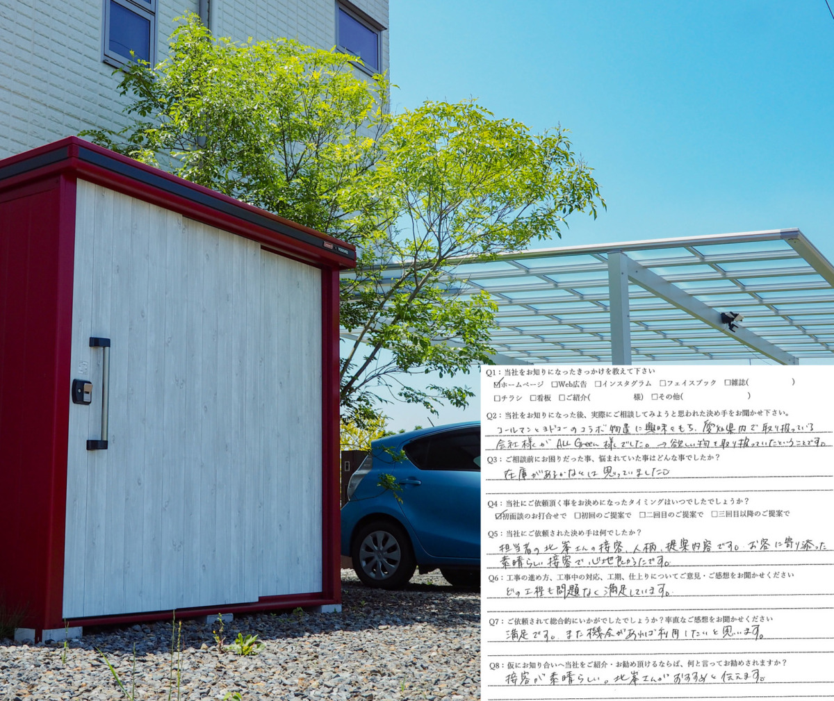 コールマンとヨドコーのコラボ物置に興味を持ち、愛知県内で取り扱っている会社様がALLGREEN様でした。