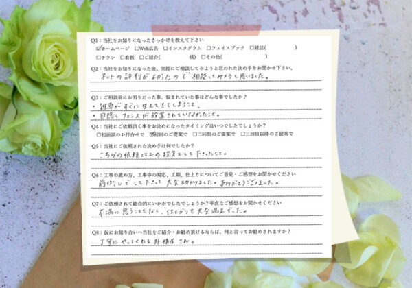 ホームページでオールグリーンのことを知り、他社とは違う感じが良かった...