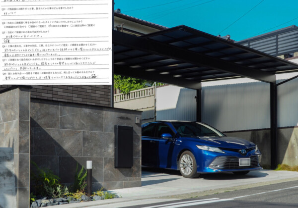 名古屋市守山区F邸 駐輪スペースに設置された屋根の詳細と工事の進捗状...