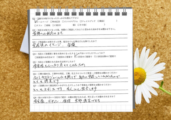 Q1:当社をお知りになったきっかけを教えてください ☑ その他(住宅展示場) Q2:当社をお知りになった後、実際に...