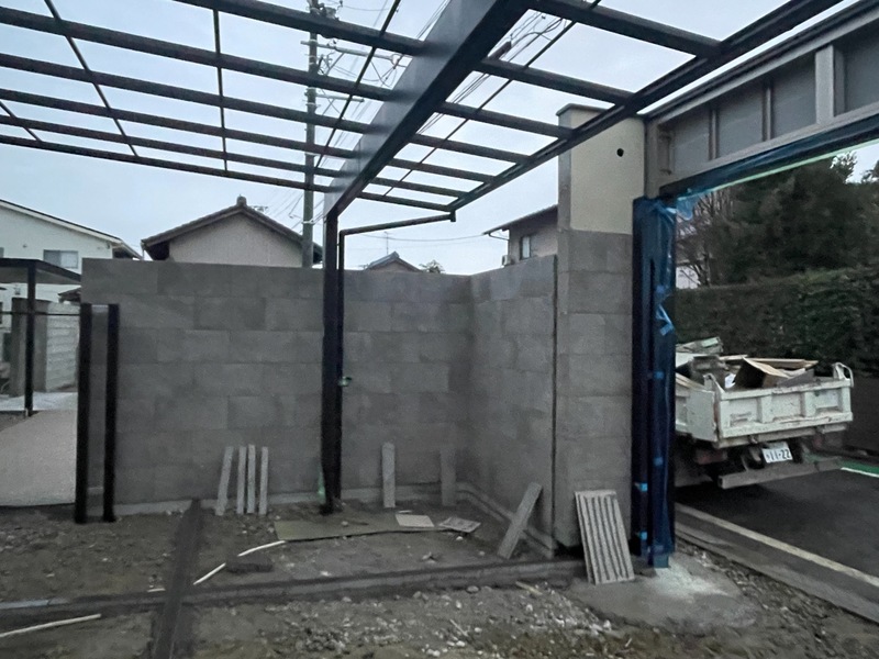 カーポートのある駐車空間を造っているとおもいきや、ガレージでした😮❗❗おどろき❗❗