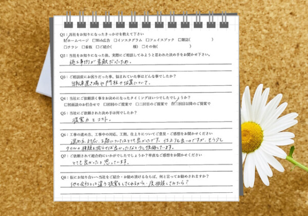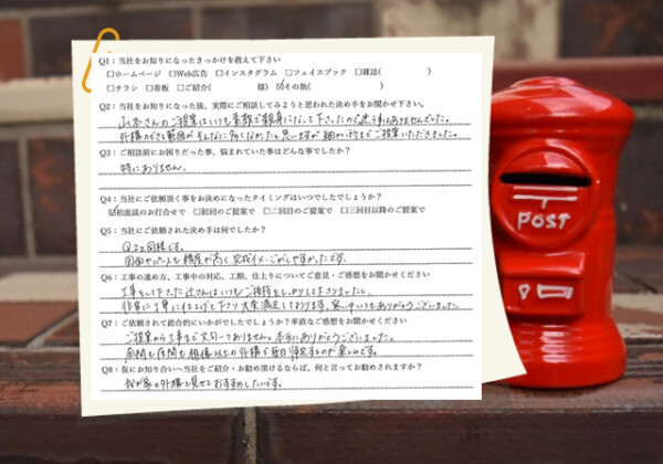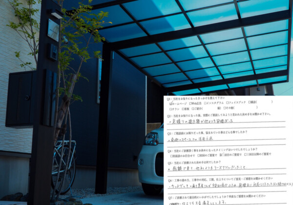 Q1:当社をお知りになったきっかけを教えてください ☑ ホームページ ※名古屋、外構工事で検索しました。 Q2:当...
