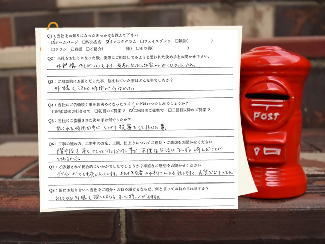 デザインがとても気に入っています。また、担当者の小柳さんも話しやすく、希望通りでした。