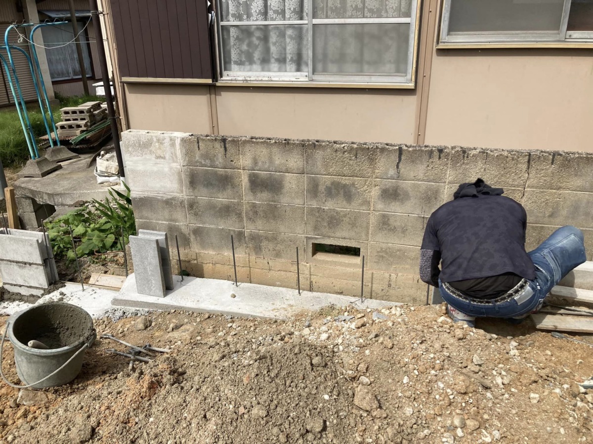 鉄筋らしきものが見えるのでブロックを積む前の工程になるんでしょうか❓❓❓