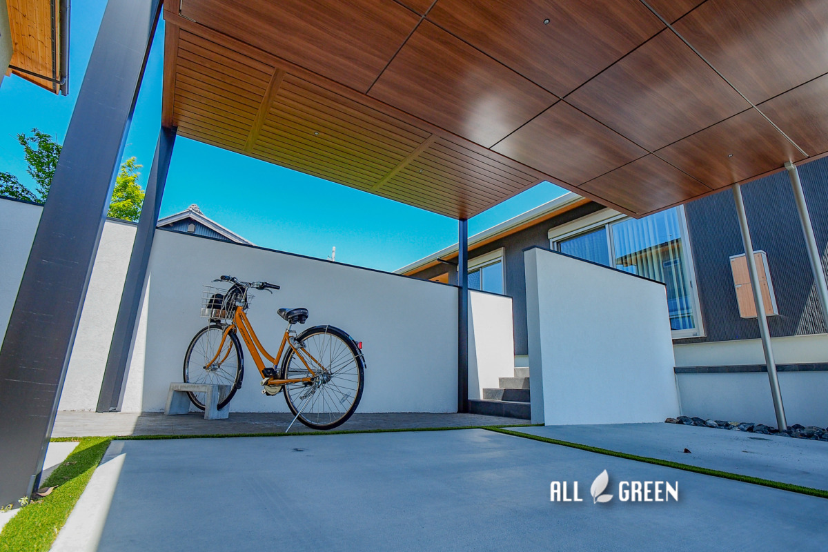 カーポートの奥にはサイクルポートを施工しています。