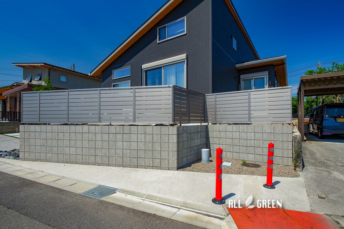 駐車場、カーポート、駐輪場、サイクルポート、門塀、階段、アプローチ、フェンス、目隠しフェンス、物置、立水栓、人工芝、照明、植栽