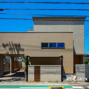 重厚感のある建物にそぐうようにと、建物正面に構えるカーポートは天井材付きのものをご提案させていただきました。