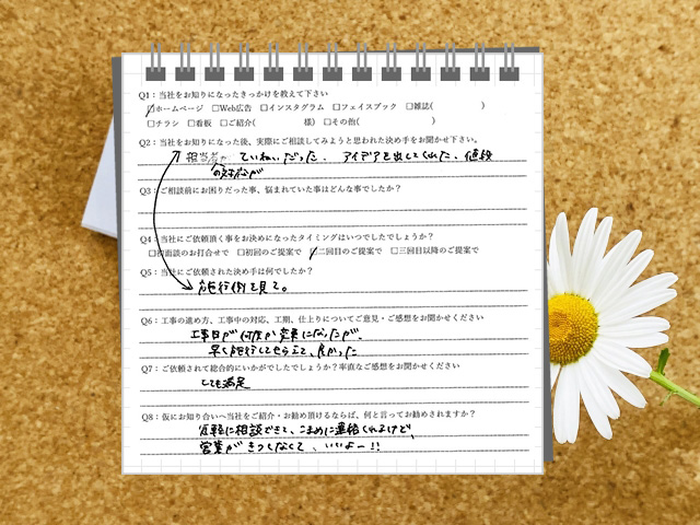 工事日が何度か変更になったが、早く施工してもらえて良かった。