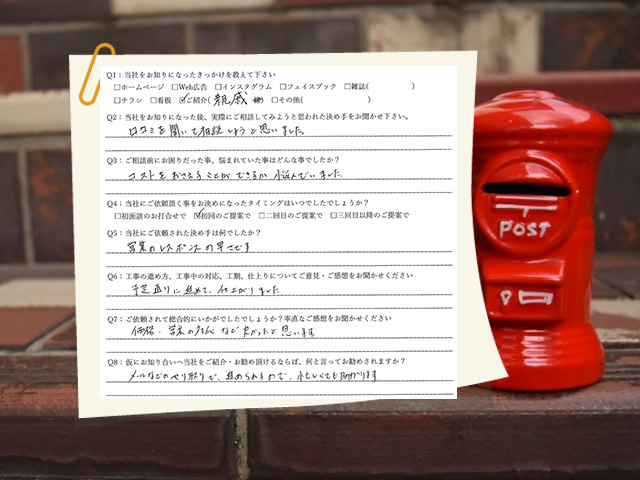 Q6:工事の進め方、工事中の対応、工期、仕上がりについてご意見・ご感想をお聞かせください