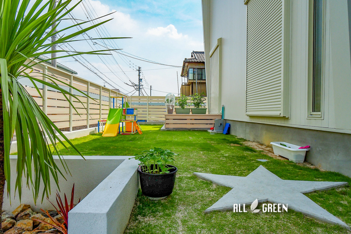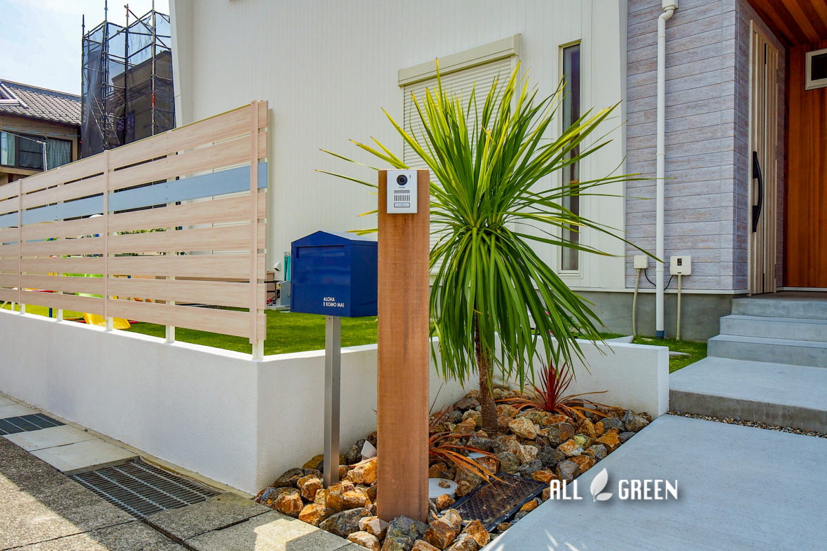 名古屋市守山区 フェンスや植栽など細部にまでこだわり抜かれたリゾート風オープン外構
