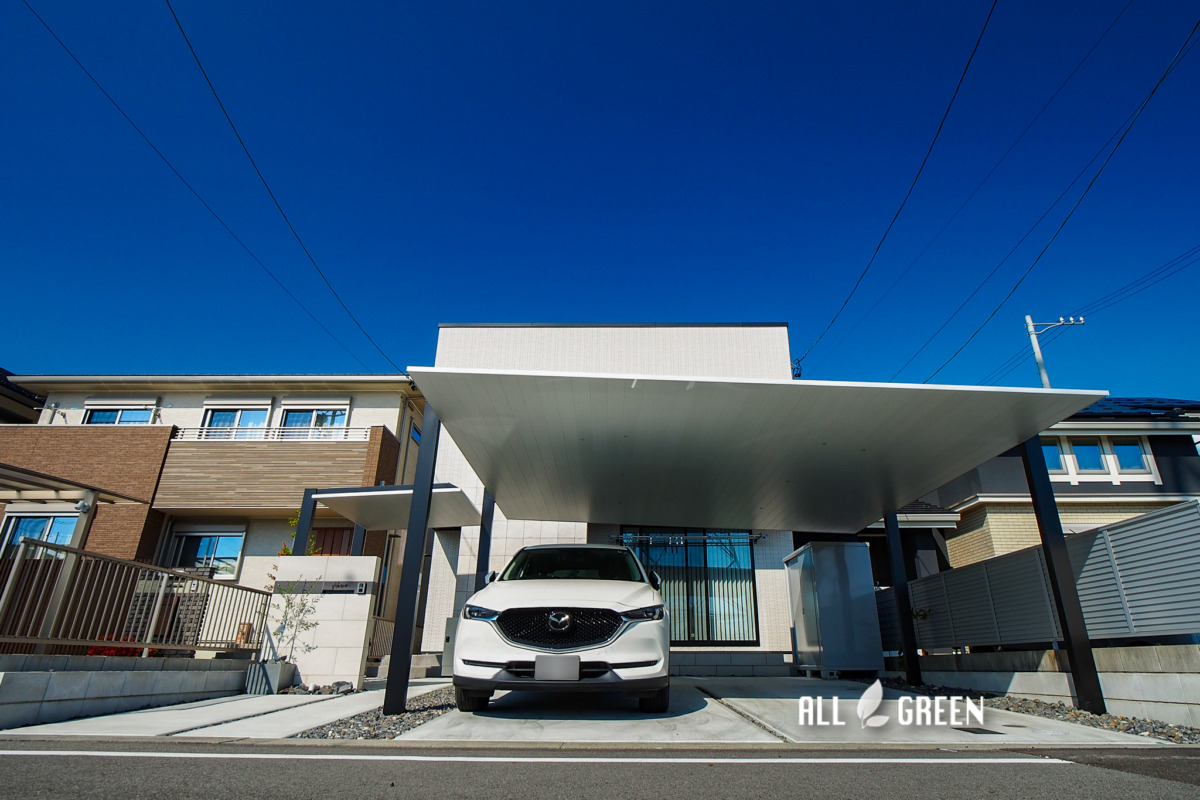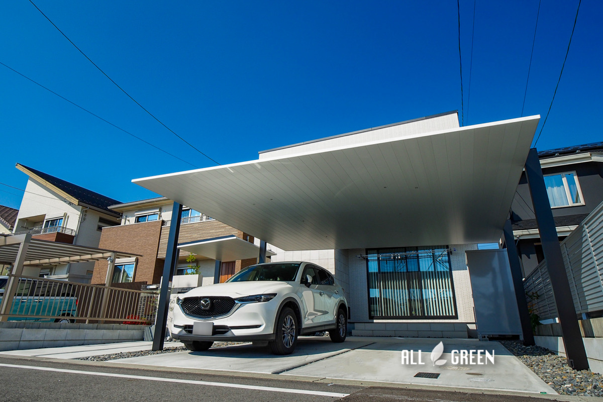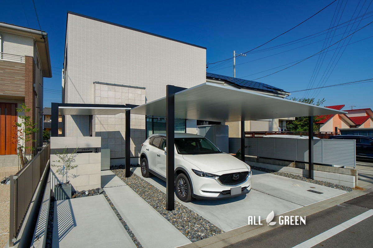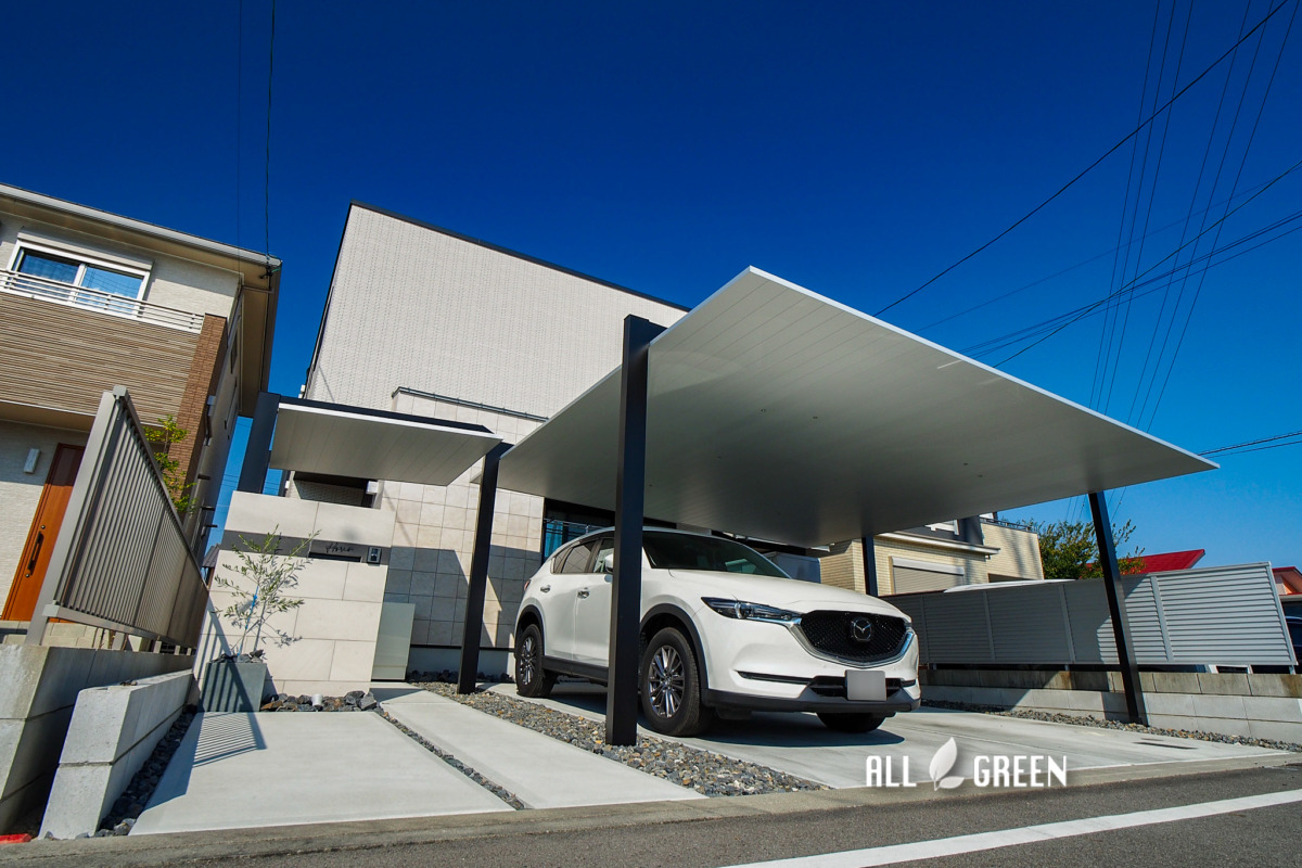 愛知県清須市 カーポートにSC、サイクルポートにもSC!邸宅のイメージにあったシンプルでかっこいいモダン外構