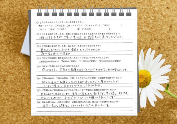 Q1:当社をお知りになったきっかけを教えてください ☑ ホームページ Q2:当社をお知りになった後、実際にご相談し...