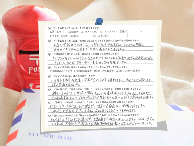 担当の小柳さんと現場の職人さんとの連携ばっちりで、トラブルなんかもありつつも、その都度対応してくれました。