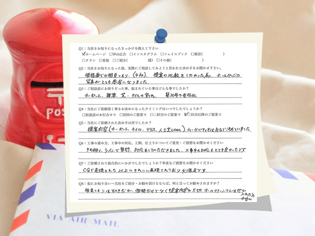 価格面での相見積もりで4社からの提案の比較したかったので、HPの写真がとても参考になりました。相見積もりはすべきですが、価格だけでなく提案内容が大切。オールグリーンさんは是非入れた方が良いです!名古屋市天白区/I様邸