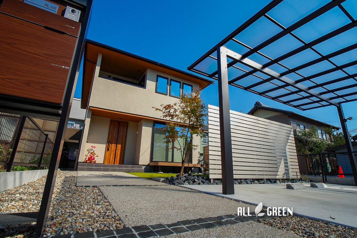 愛知県江南市 温かみ溢れるオープン外構は家族の笑顔溢れる素敵なお庭のある空間に。