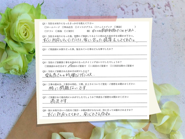 すぐに対応していただけて、家に合った提案をしてくれた。
