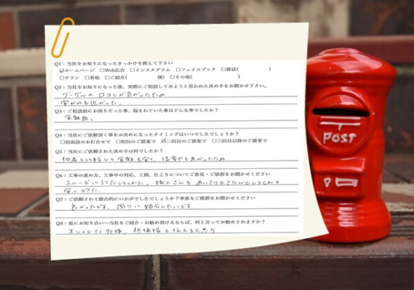 Q1:当社をお知りになったきっかけを教えてください ☑ ホームページ Q2:当社をお知りになった後、実際にご相談し...