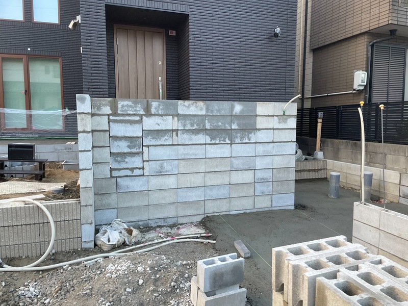 メインの門塀の右横にも何かブロックを積み上げて造っているのがわかりますね🤔❗❓