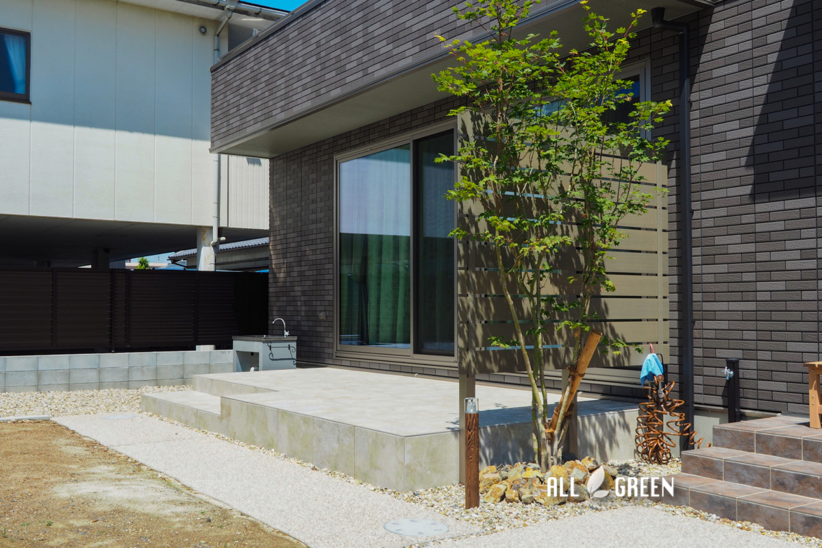 愛知県知立市 お子様の飛びだし防止や将来を見据えた外構は、跳ね上げ門扉やフェンスを使ったセミクローズな空間に。