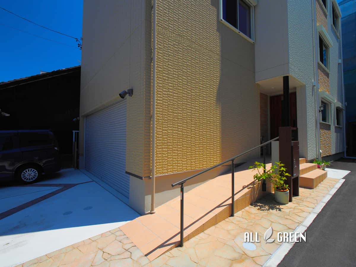 お日様カラーのオレンジで青空に映える名古屋市北区の洋風外構