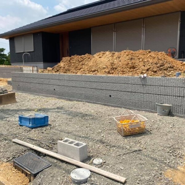 先行工事で境界ブロックが完了しました。 建物が完成したら外構工事がスタートします。