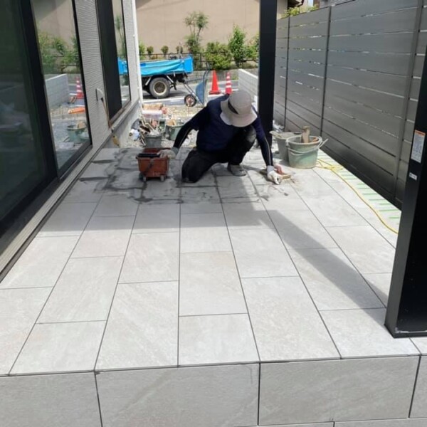 タイルデッキが貼り終わりました。 目地材を込めてデッキの完了です。 あとは土間コンクリート、植栽で完了です。 お天気と相談しなが...