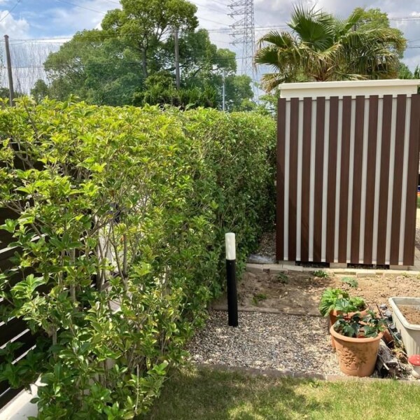 本日は植栽です。 シンボルツリーにオリーブです。 フェンス沿いにした草でアレンジしました。 ポストの赤色と緑のバランスがいいです...