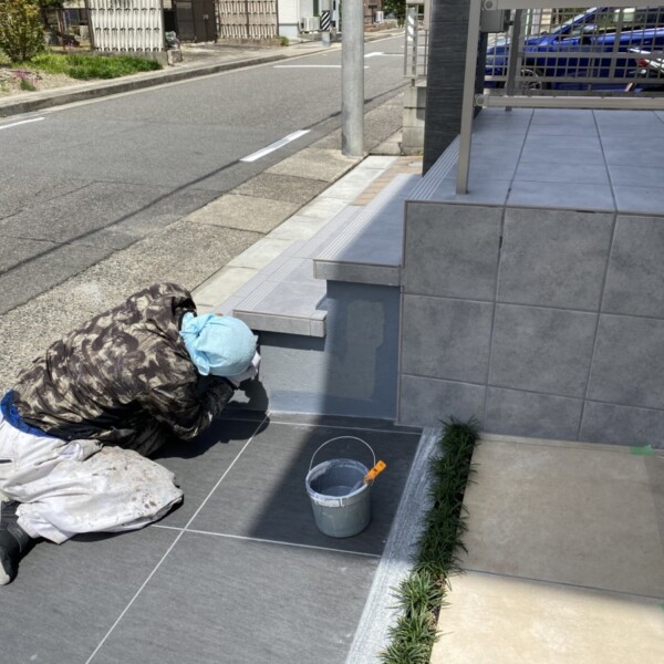 本日は階段塗装部の仕上げ塗装です。 階段の蹴上げ部が塗装仕様の為 弾性塗料で作業です。 あと少しで完成です。