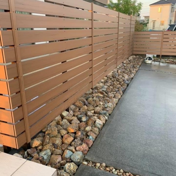 植栽撤去後フェンス施工が終わりました。 フェンスの足元にはチャート石でアクセントです。 フェンスの内側は人工芝の施工予定です。 ...