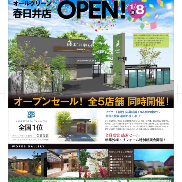 オールグリーン名古屋(八事)、岡崎(美合)清須(一場)、名古屋西(高畑)に続き、いよいよ春日井(若草通)が2021年1月8日(金...
